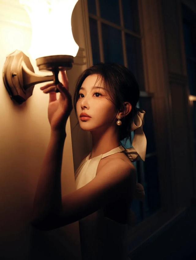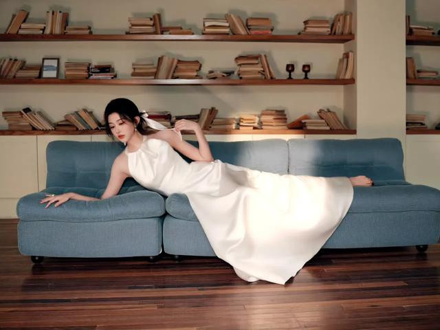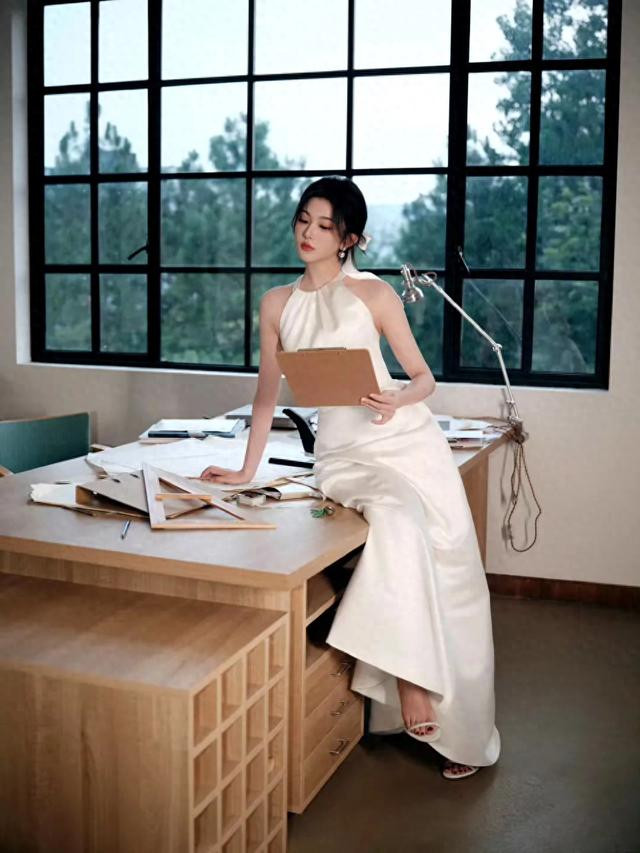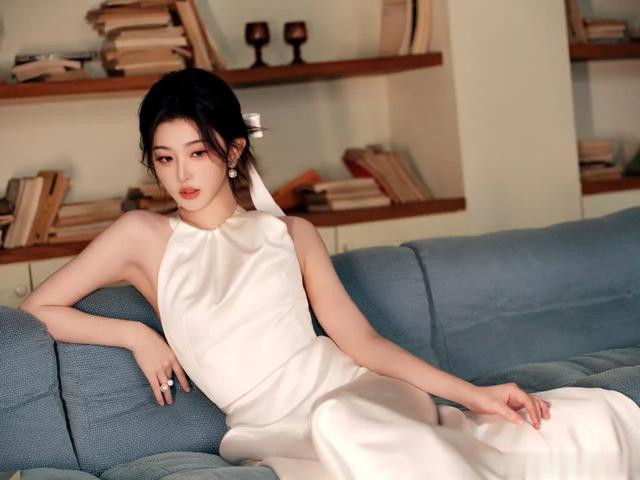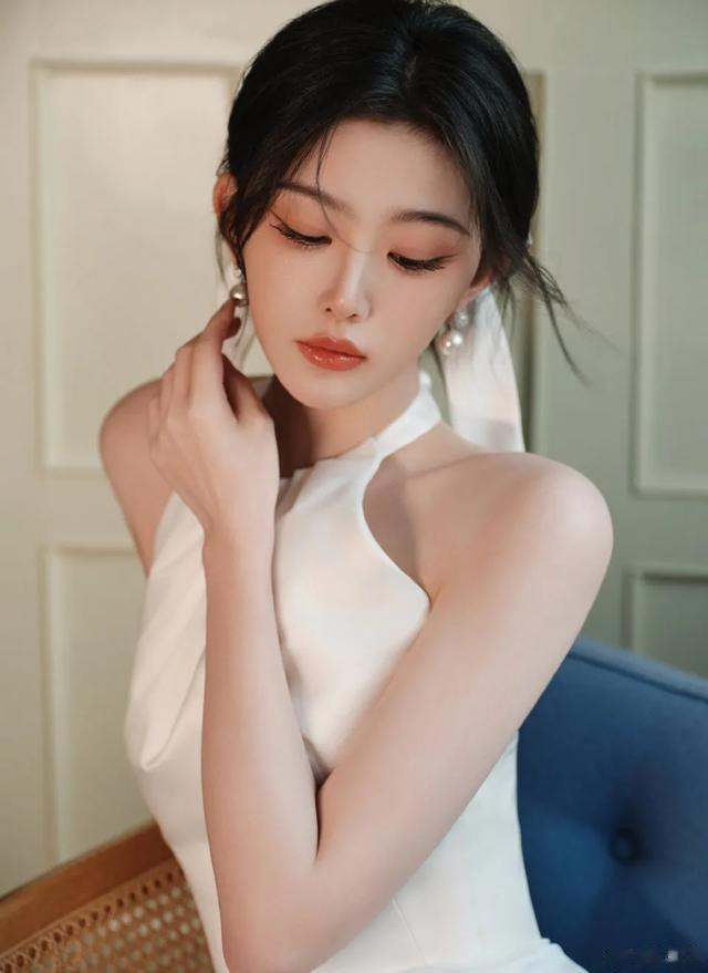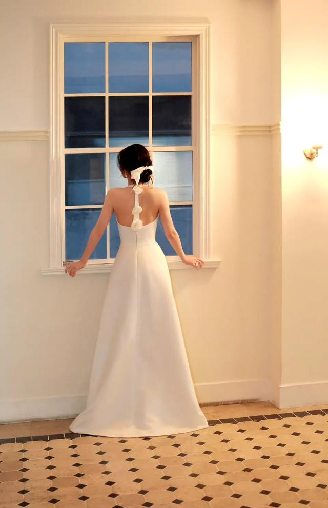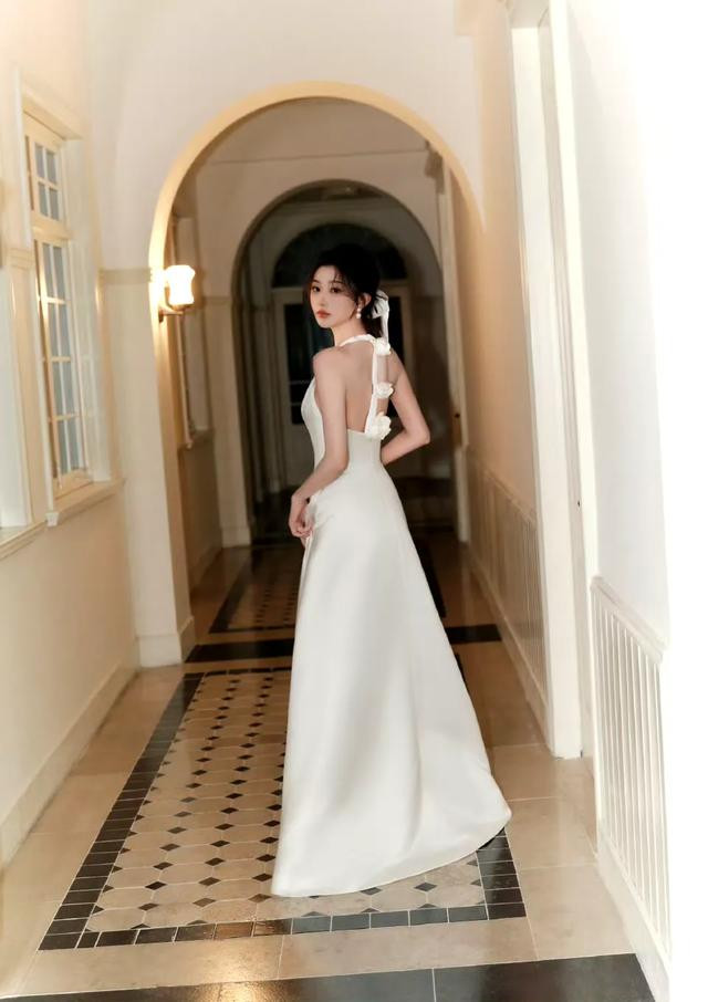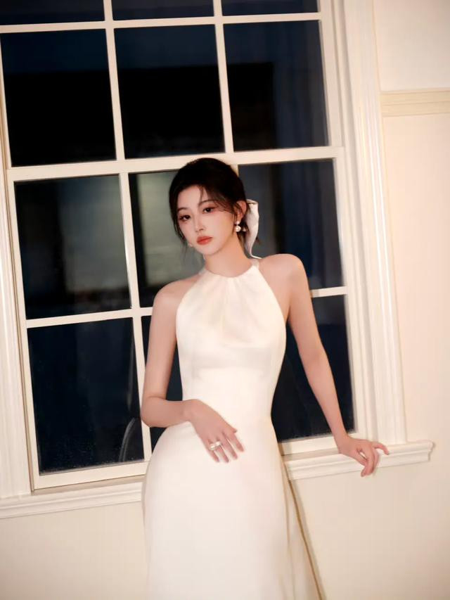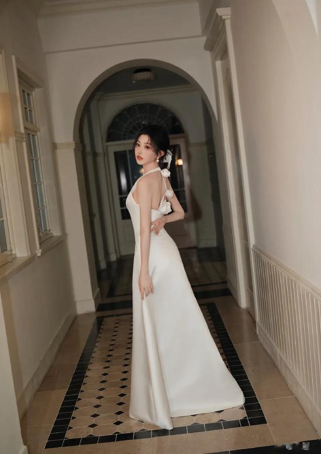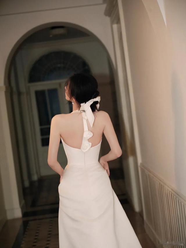 > 孔雪儿 白色挂脖连衣裙美美哒